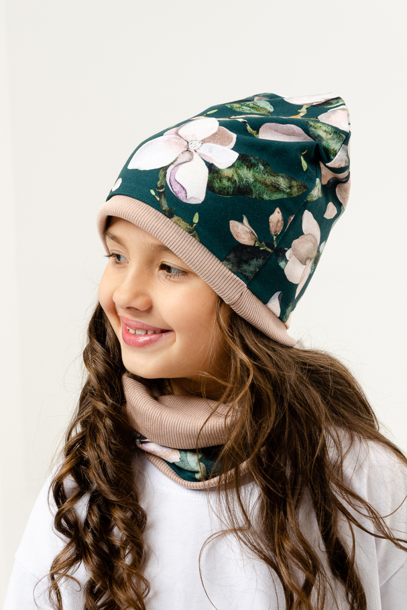 Комплект для девочек: шапка + шарф-снуд в детской в стильной расцветке.