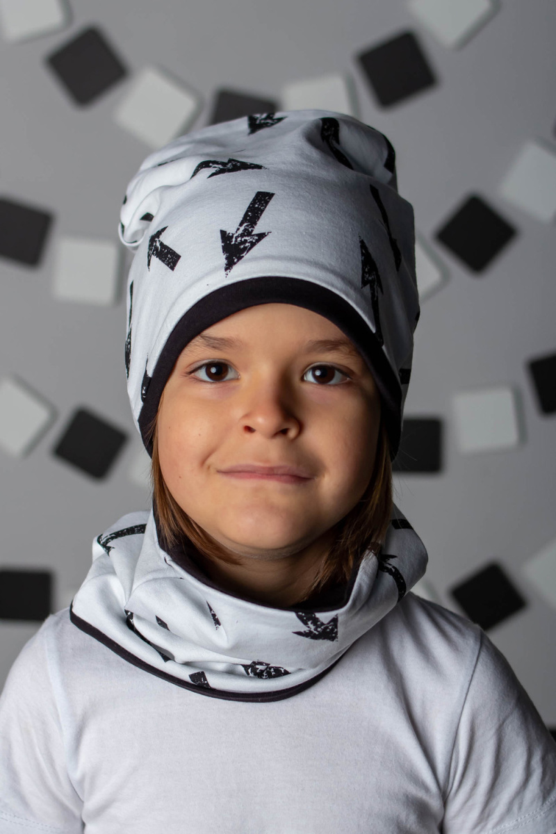 Детская шапочка для мальчиков в современных, приятных цветах.